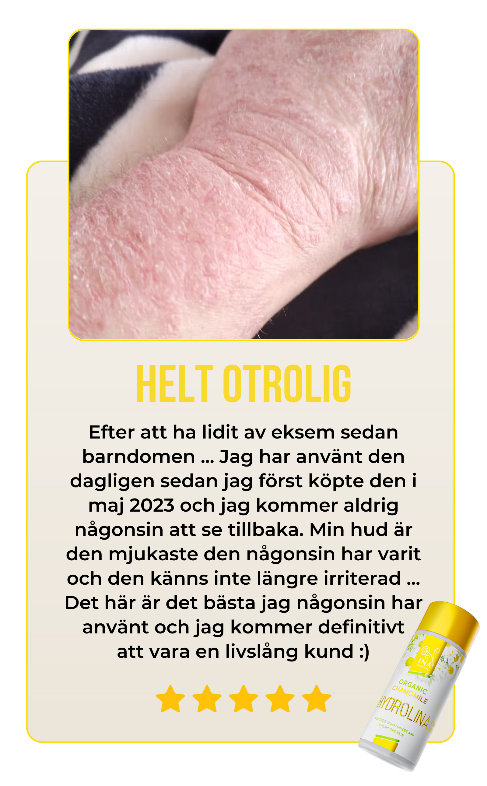 Jag har känslig hud och har kämpat med att hitta en fuktighetskräm som inte orsakade irritation. Crème de Rose har varit en räddare i nöden. Jag kan inte rekommendera den tillräckligt mycket!