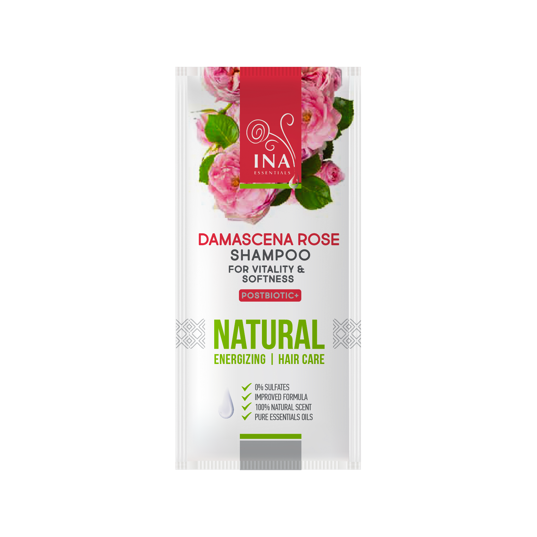 + Gåva Naturligt Schampo med Ros för Torrt och Skadat hår (prov)