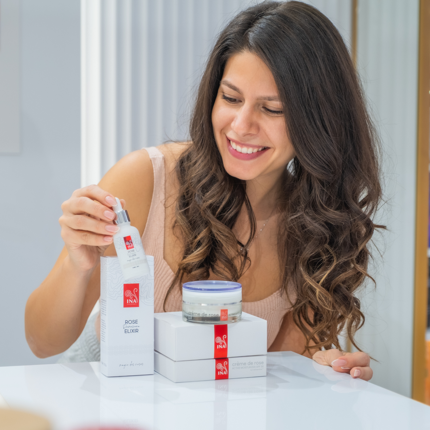 InaEssentials Rose Elixir är ett intensivt, högkvalitativt anti-aging ansiktsserum formulerat med äkta rosenolja och kraftfulla botaniska aktiva ingredienser. Dess lätta formula ger daglig föryngrande vård samtidigt som den återfuktar på djupet, stärker huden och bekämpar tecken på åldrande.